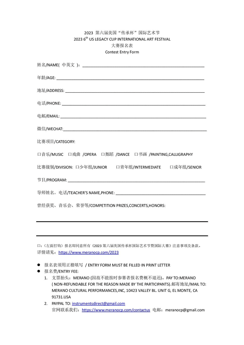 (图8, 2023年第六届美国传承杯国际艺术节报名表)