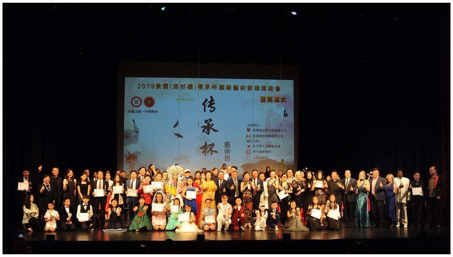 这是主办单位中华文化创意基金会, 美国梅拉诺演艺集团连续第六年在美国洛杉矶举行传承杯国际艺术节, 得到中华人民共和国驻洛杉矶总领事馆的指导和鼓励, 洛杉矶郡政府的大力支持, 来自世界的各地的参赛选手报名, 积极踊跃, 一届胜过一届, 成为东方文化在天使之城的一道靓丽风景线.