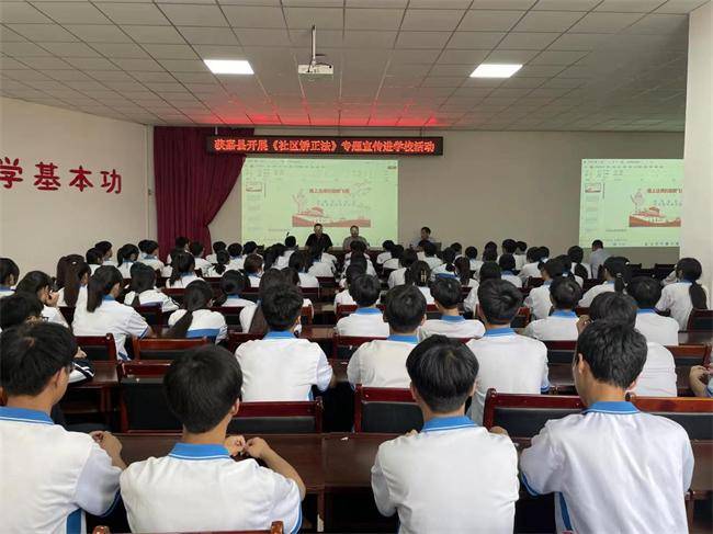 今年7月1日是《中华人民共和国社区矫正法》施行三周年。为践行“马上办理 马路办公”机制,深入学习宣传《社区矫正法》,营造全民理解、社会认同、群众支持的社区矫正工作氛围,6月25日,获嘉县司法局组织普法志愿者深入到获嘉县职业中等专业学校开展普法专题讲座,率先拉开“社区矫正法宣传周”活动序幕。