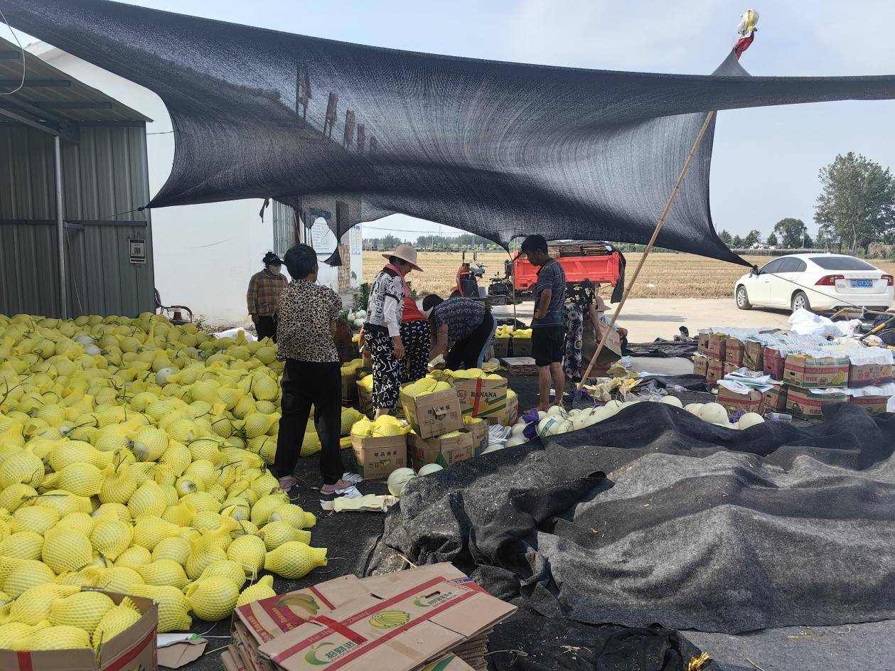 炎炎六月,走进罗王镇老九庄村有机设施蜜瓜产业园,一栋栋鳞次栉比的钢架大棚里充满了绿色生机,呈现一派丰收景象。一筐筐刚采摘的新鲜蜜瓜正在装车,空气中处处弥漫着香甜的瓜气。