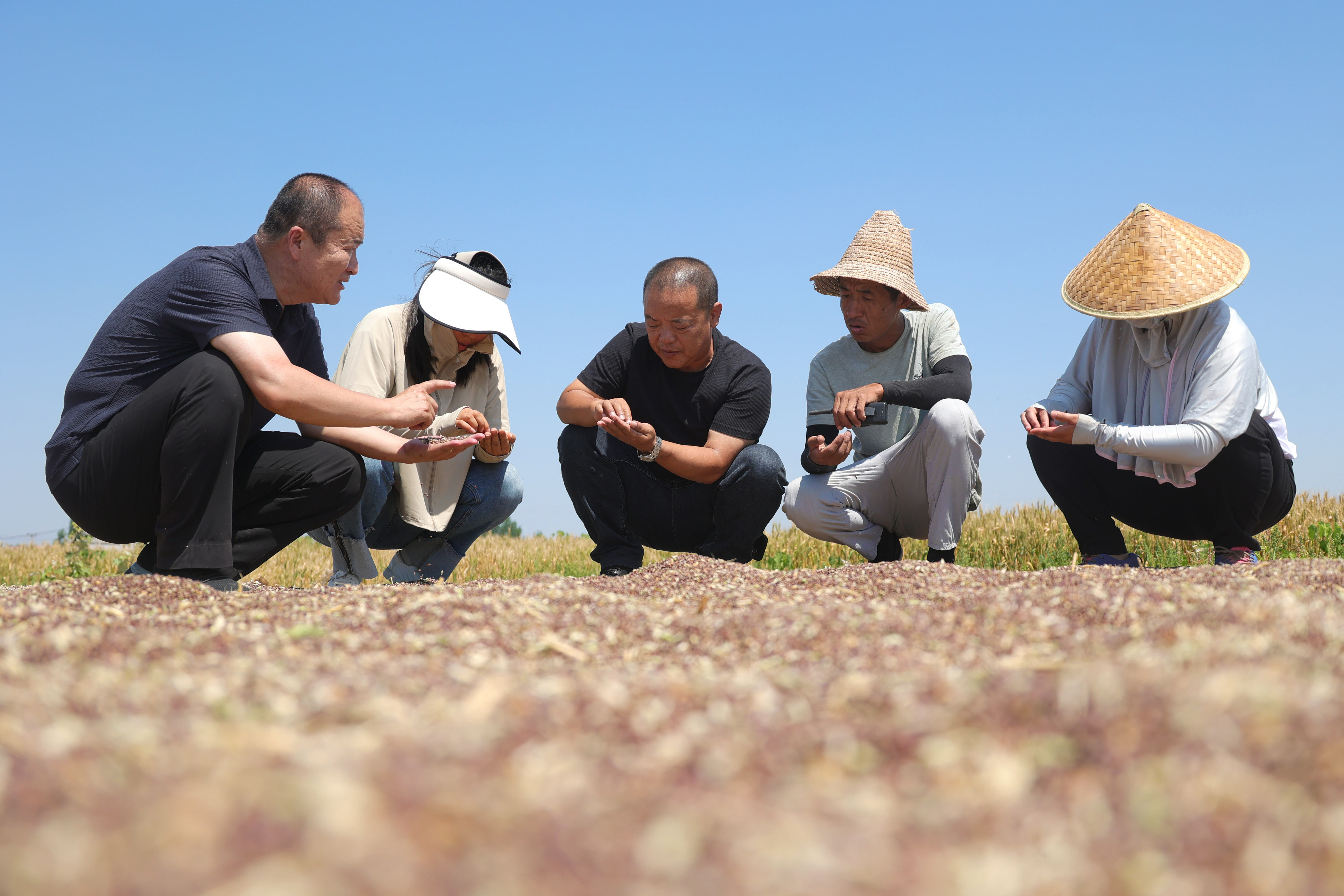 农业农村局负责人和彩麦种植户商讨种植计划。鲍俊秀 摄