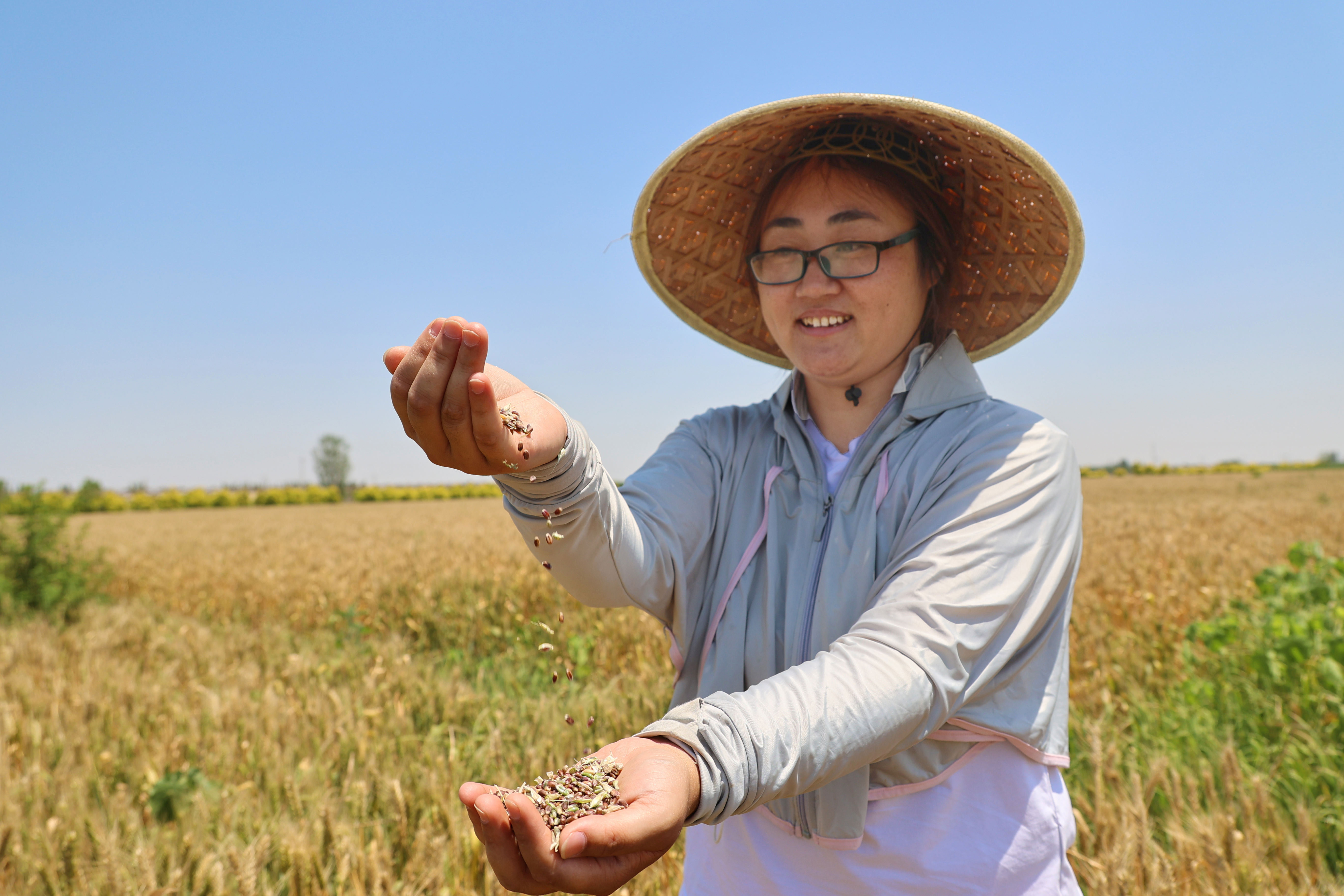 以彩麦种植为基础,南皮县大力发展“公司+基地+农户”的“彩色经济”,提前与农民签订小麦订单合同,以高于市场的价格进行回收,农民的“钱袋子”随着“粮袋子”一同鼓起来。“我在村里承包了1800亩地,专门种彩麦。比起种普通麦子,每亩增产100公斤,每亩多赚500元。”向阳村种植户徐西华高兴地说。