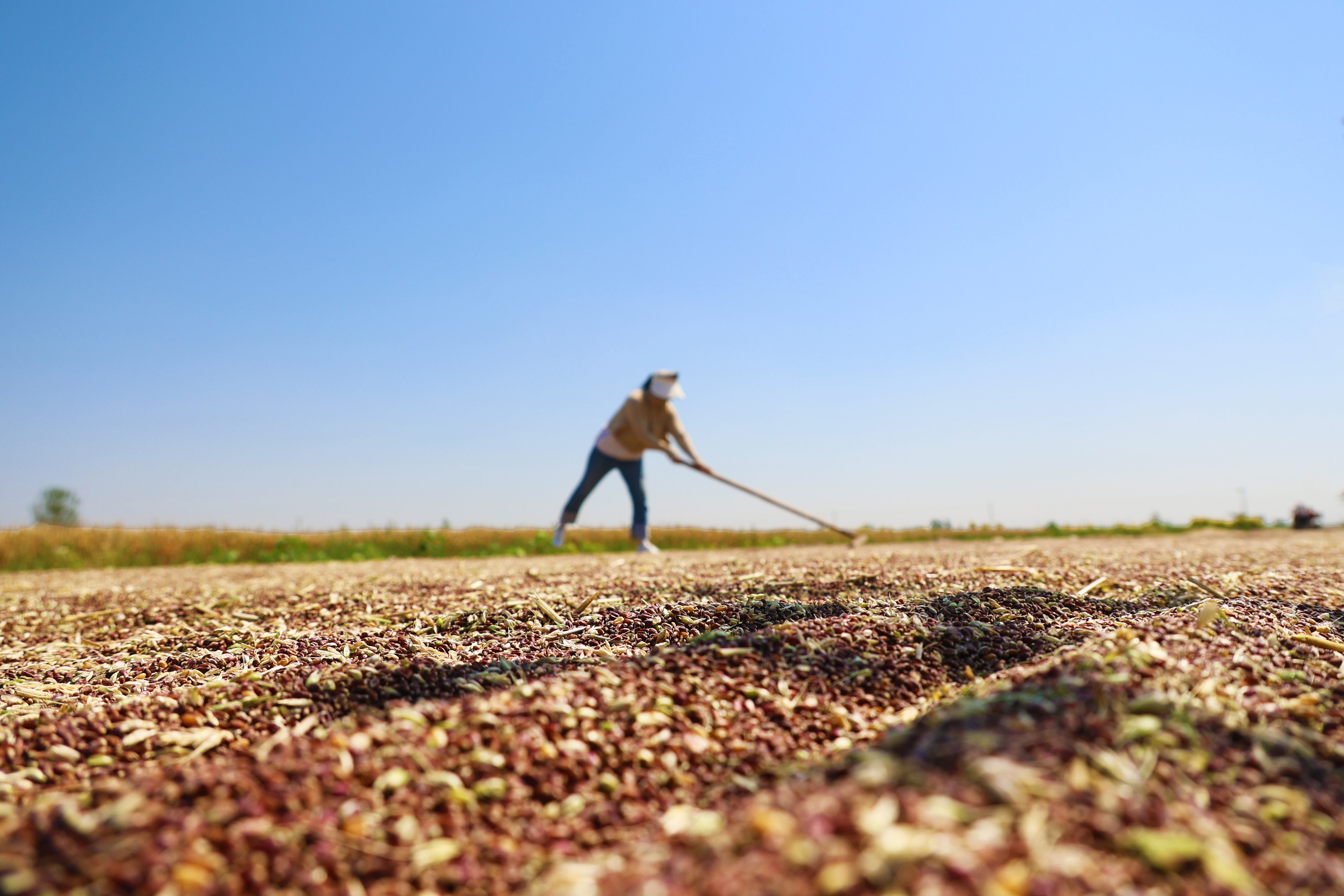 在河北省沧州市南皮县刘八里镇,彩麦种植户正在晾晒紫色彩麦。鲍俊秀 摄