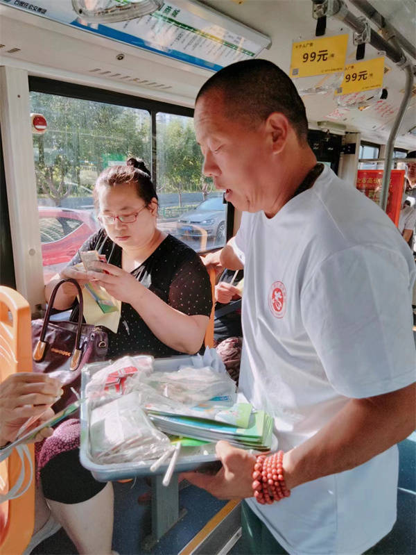 还向市民发放节约用水小窍门宣传单和免费发放扇子,更让市民感动的是,“一家人”志愿者负责人温德军购买了蟑螂药和蚂蚁(汶)免费发放给乘车的市民,大家高兴的一个劲的说谢谢您了。