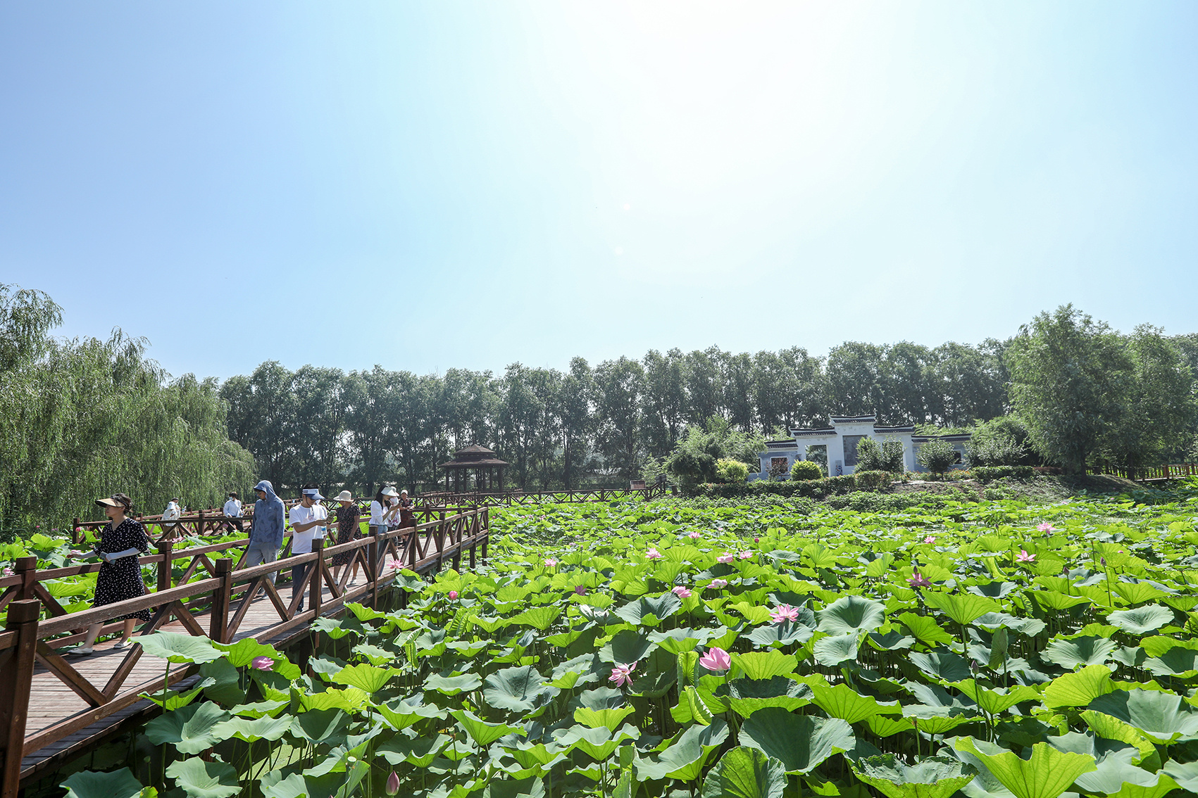 香河县利用独特的区位优势,不断探索创新“旅游+农业”模式,大力发展以荷花为主题的生态旅游观光业,在庆功台村已建成规模达10000余亩的荷塘,夏日赏荷,秋日挖藕成为当地特色旅游品牌,促进了村集体经济增收和农民致富,助力乡村振兴。