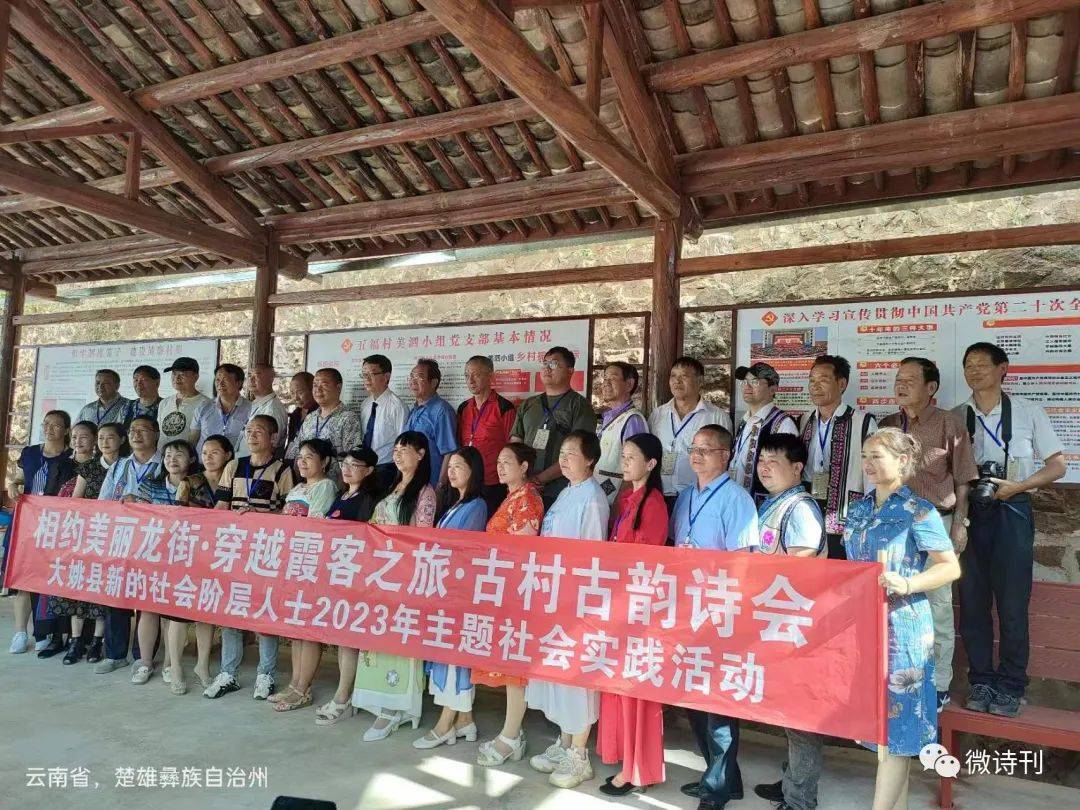 5月26日,来自省外和云南昆明、楚雄、大理、祥云、宾川等地五十多位诗友汇聚云南·大姚龙街,在当年徐霞客停宿过的美泗村举行“相约美丽龙街、穿越霞客之旅”古韵诗会,诗友们现场朗诵、创作,诗采飞扬……