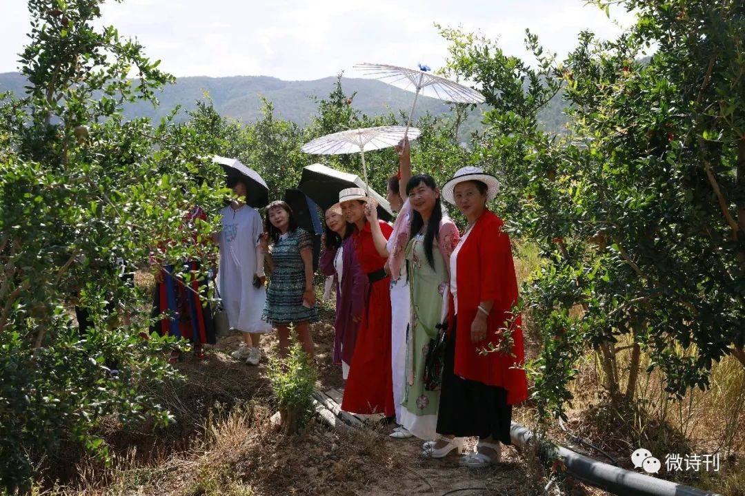 上午,来自省内外的五十多名诗人到龙街绞苴千亩石榴花海和鼠街大沙地蓝莓园采风。众诗人纷纷走入田间,看花海,品蓝莓,了解种植经验和规模。随后,大家在街上体验一年一度的“太子会”,舞龙游街、祭太子仪式、民族服饰、民族乐器等等都深深吸引着大家,一路上,起云金主席向大家介绍“太子会”的起源、发展和变革,让大家有了更为深刻的认识。