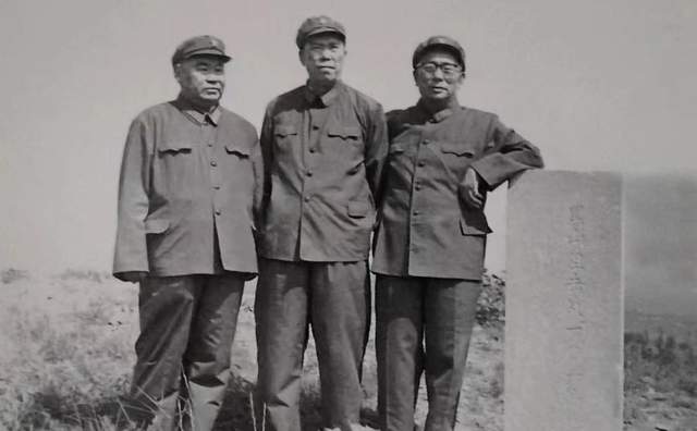 1981年,重返黑山阻击战战场101高地,左起:杨大易,梁兴初,贺庆积。