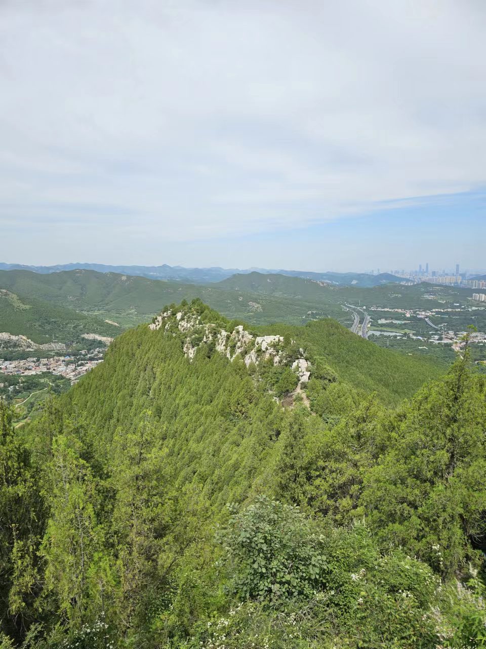 山坡比较陡峭,但山林里空气清新,偶尔还有阵阵的凉风相伴,这是夏季爬山最为难得的。我们爬累了就歇歇脚,及至登上了第一座山峰,用了还不到半小时。