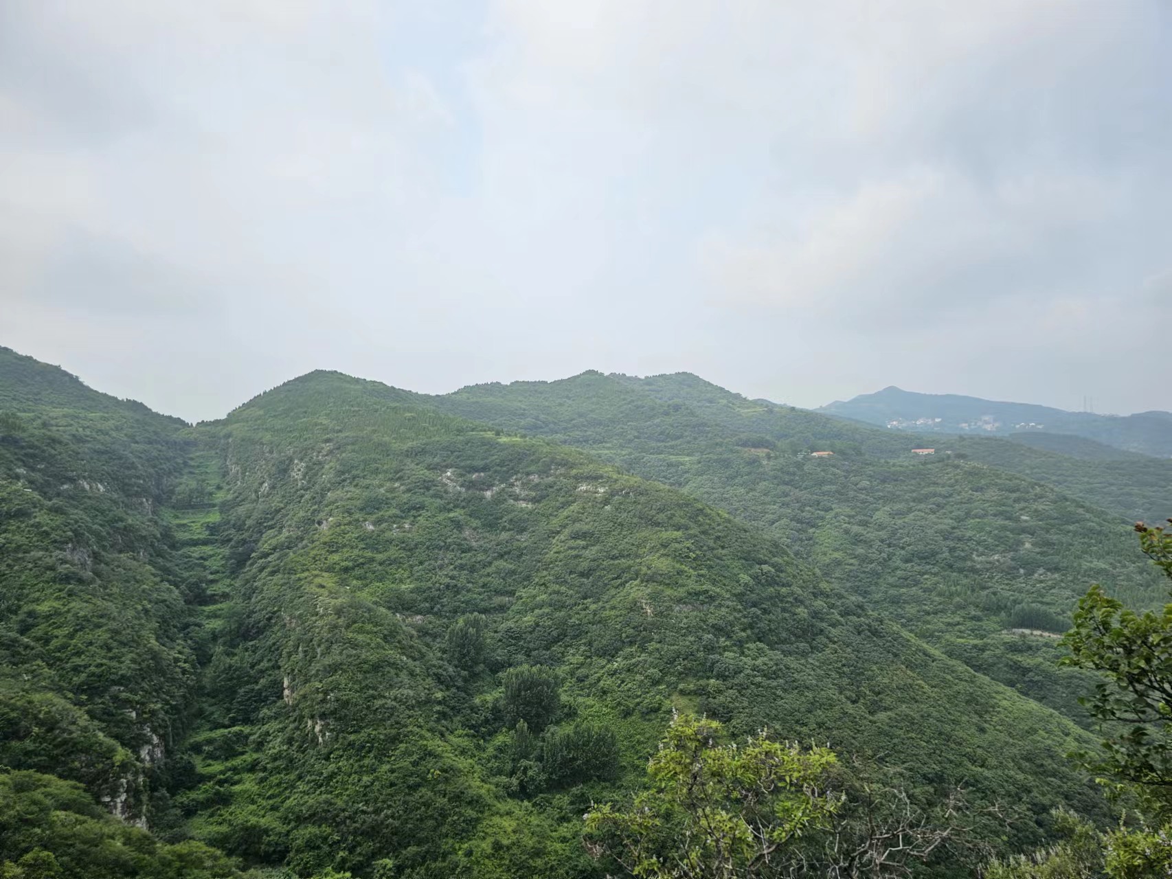 出了松林,往南一看,面前是一道大峡谷,峡谷之南直到泰山,山岭逶迤,重峦叠嶂,绿意盎然,一眼望不到边,心胸顿时感到无比地开阔。最近处的一座大山背阴里,在半山腰的淡淡云雾里挂着一个小村庄,像仙境似的,那就是拔槊泉村。