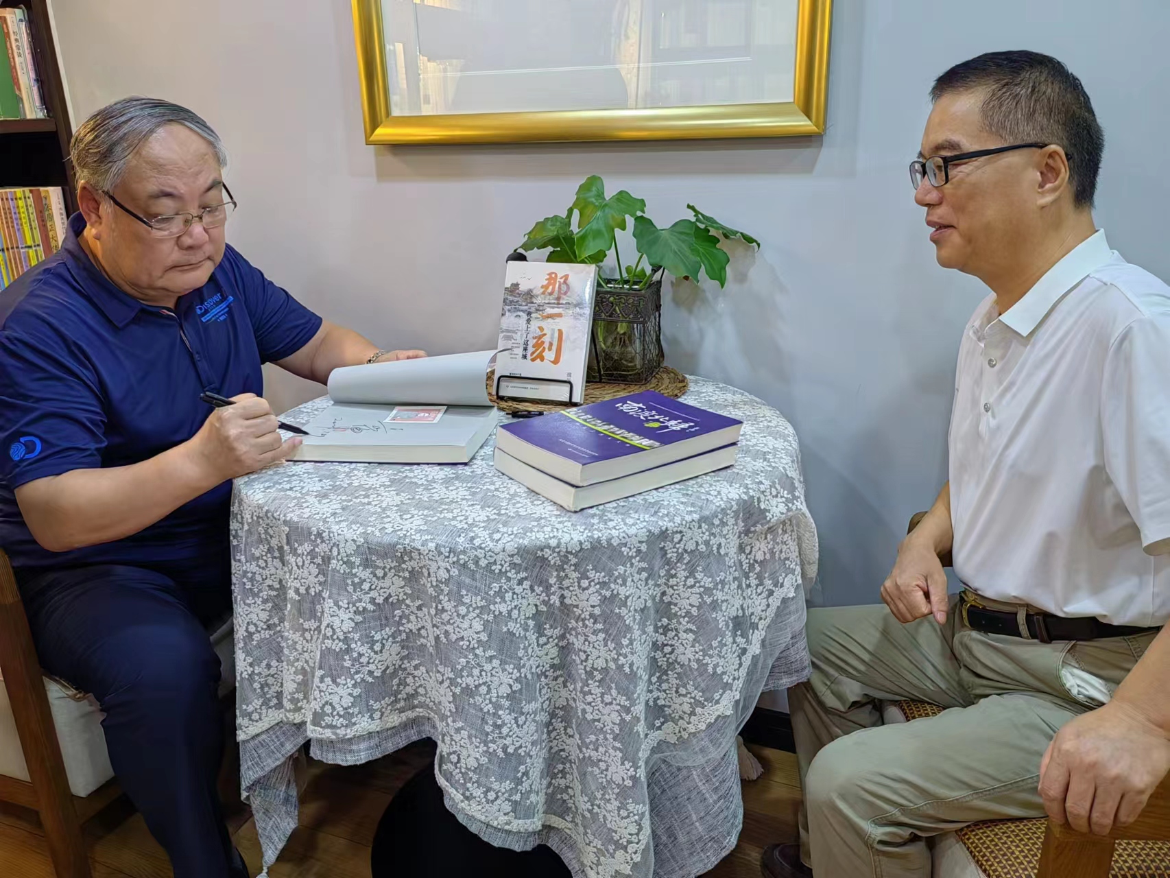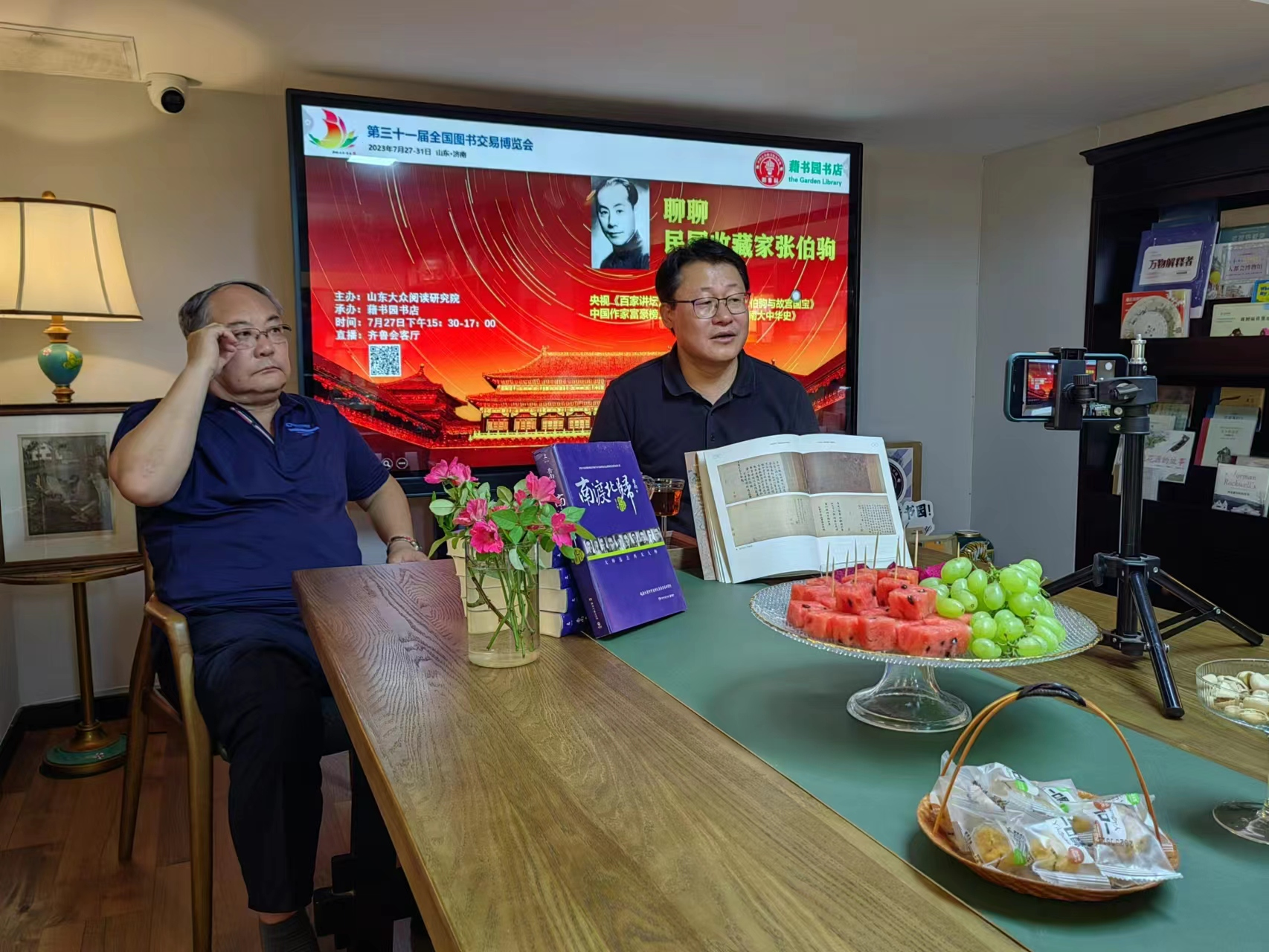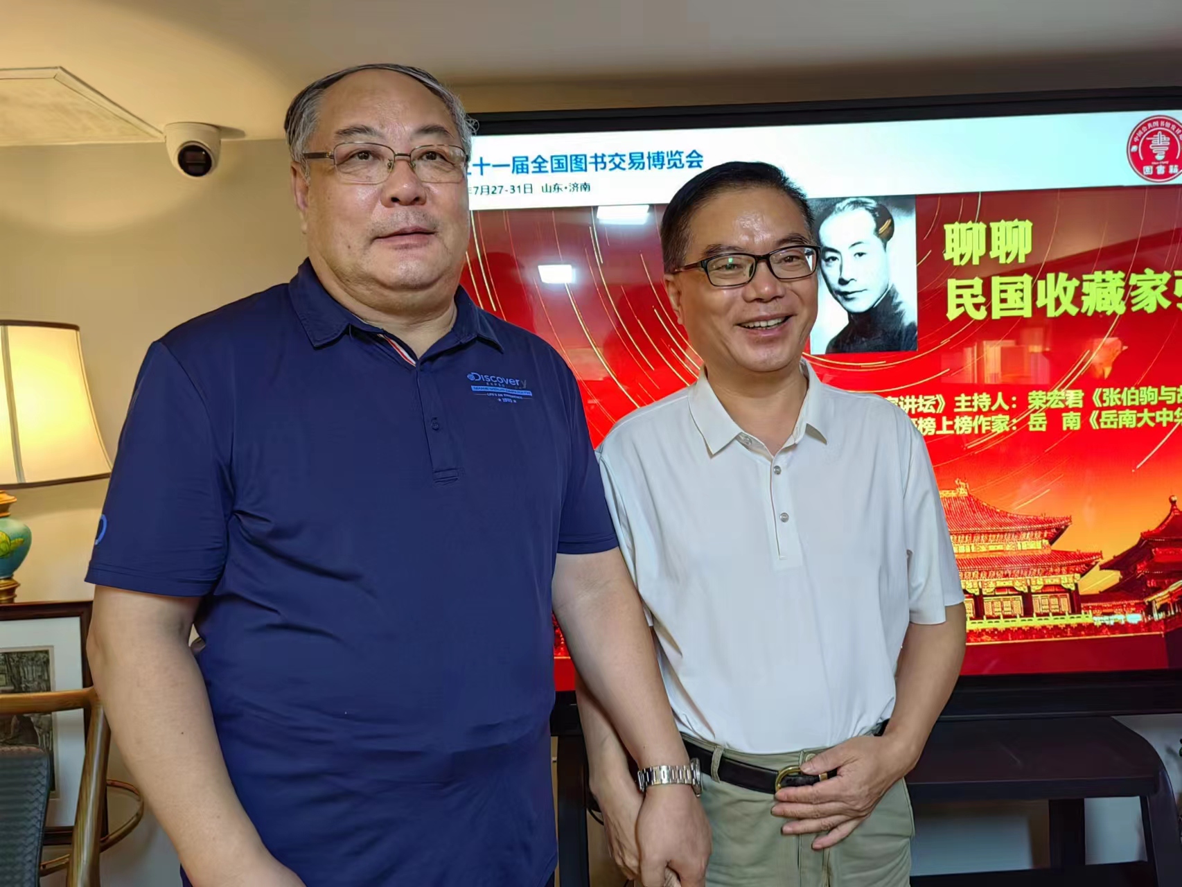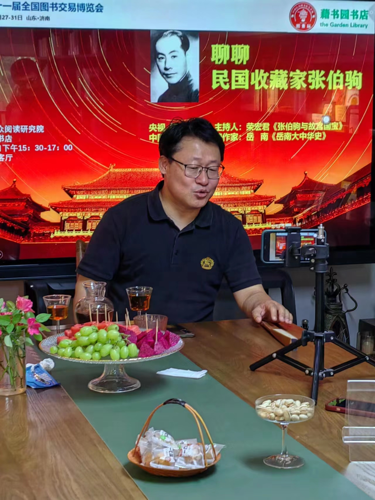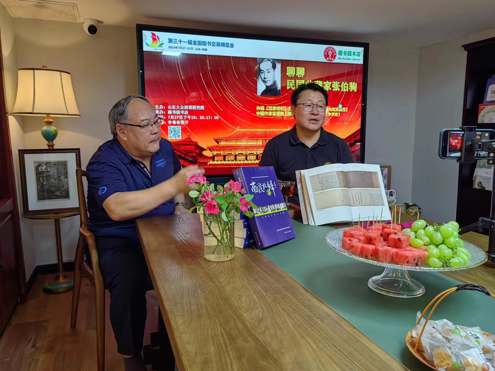7月27日下午15:30—17:30,荣宏君、岳南走进具有254年文化传承的济南藉书园书店,与读者见面,并进行了二个小时的网上直播,随后,岳南先生还热情为现场购买《南渡北归》的读者一一签名。