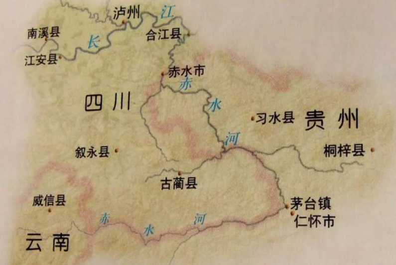 这条赤水河从云南镇雄发源而来,掩映在青山之中的滮水岩,有瀑布飞溅而下。就在瀑布的顶端山岩上,有“赤水源”三个大字格外醒目。尽管源出西南边陲偏僻乡镇,但是在流经云贵川三省4市16县(市、区)之后,并在四川泸州合江县汇入长江之后,它俨然成为连接云贵川三省的一条经济动脉和人文纽带。