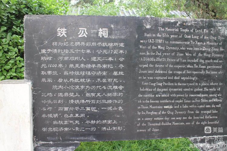 如镜明湖映历山,铁公魂魄寄尘寰。