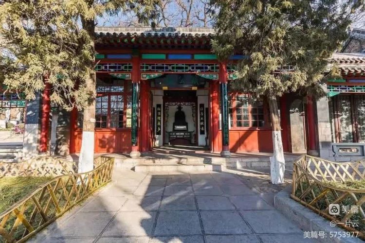 亭朝北极观神庙,廊坐西边赏妙颜。