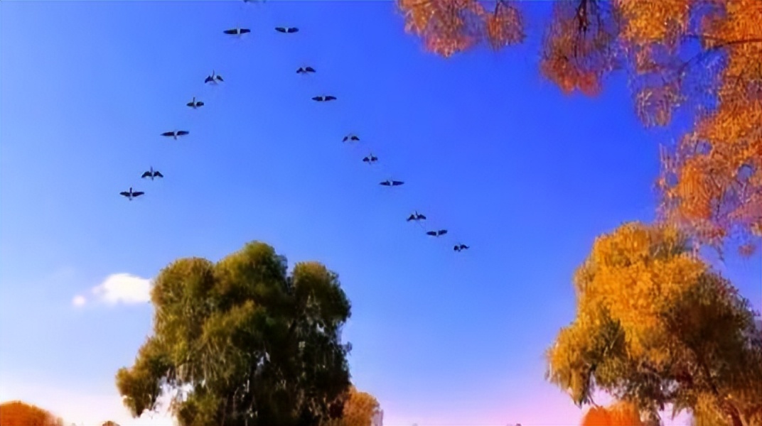 云淡天高景色幽,晴空万里雁姿柔。