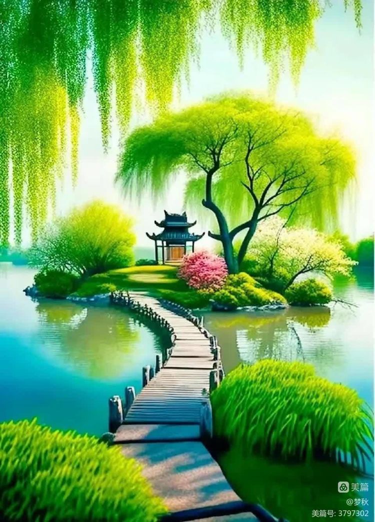 漫步竹林迎旭日,徜徉花圃润如珠。