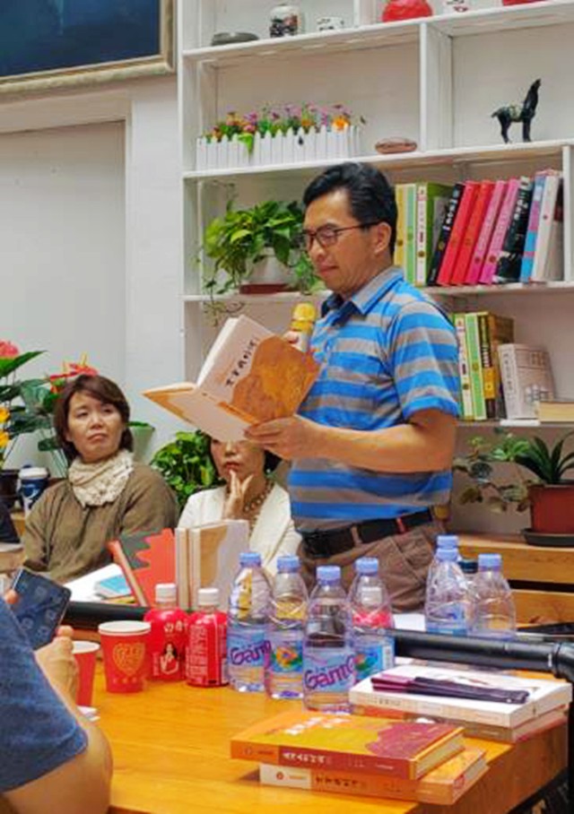 韩舸友首先转达了《世界诗歌年鉴》主编森道哈达对新书发布的祝贺,随后表达了自己对于《贯穿我的河》的看法:北塔的诗离不开河、船、河岸的故乡。从嘉兴到盛泽到北京,从大运河到小运河到塘河,从乌港到乌桥镇,他都是以诗为帆,以笔为桨,以生命为船,划过童年、青年,划过中年,也许还将一生永远地陪伴着大运河。他用诗建起步入文学殿堂的船,又用文字铺出了一条牵挂一生的故乡之路。同时,韩舸友认为,北塔的诗既有江南才子的灵秀,又有水手的奔放和潇洒。北塔不仅是大运河的儿子,也是扬帆远航的水手。他无时无刻不在用诗歌倾诉一个诗人的孤独与快乐。韩舸友还认为,诗是世界的,诗人也是世界的,一个诗人应该是作品、人品和性格三者相统一,而北塔将三者融在了一起。