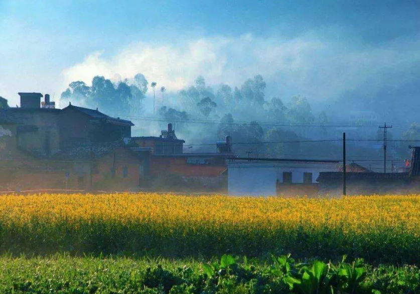 人事杳,屋场空。堤渠阡陌昔时容。苍茫暮色添惆怅,何日新村两地同。