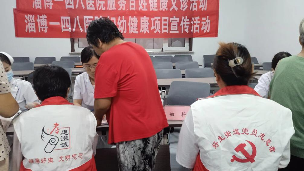 8月12日上午,中国融通医疗健康集团淄博148医院,走进邹平市好生街道贾庄村,开展服务百姓健康义诊暨妇幼健康项目宣传活动。