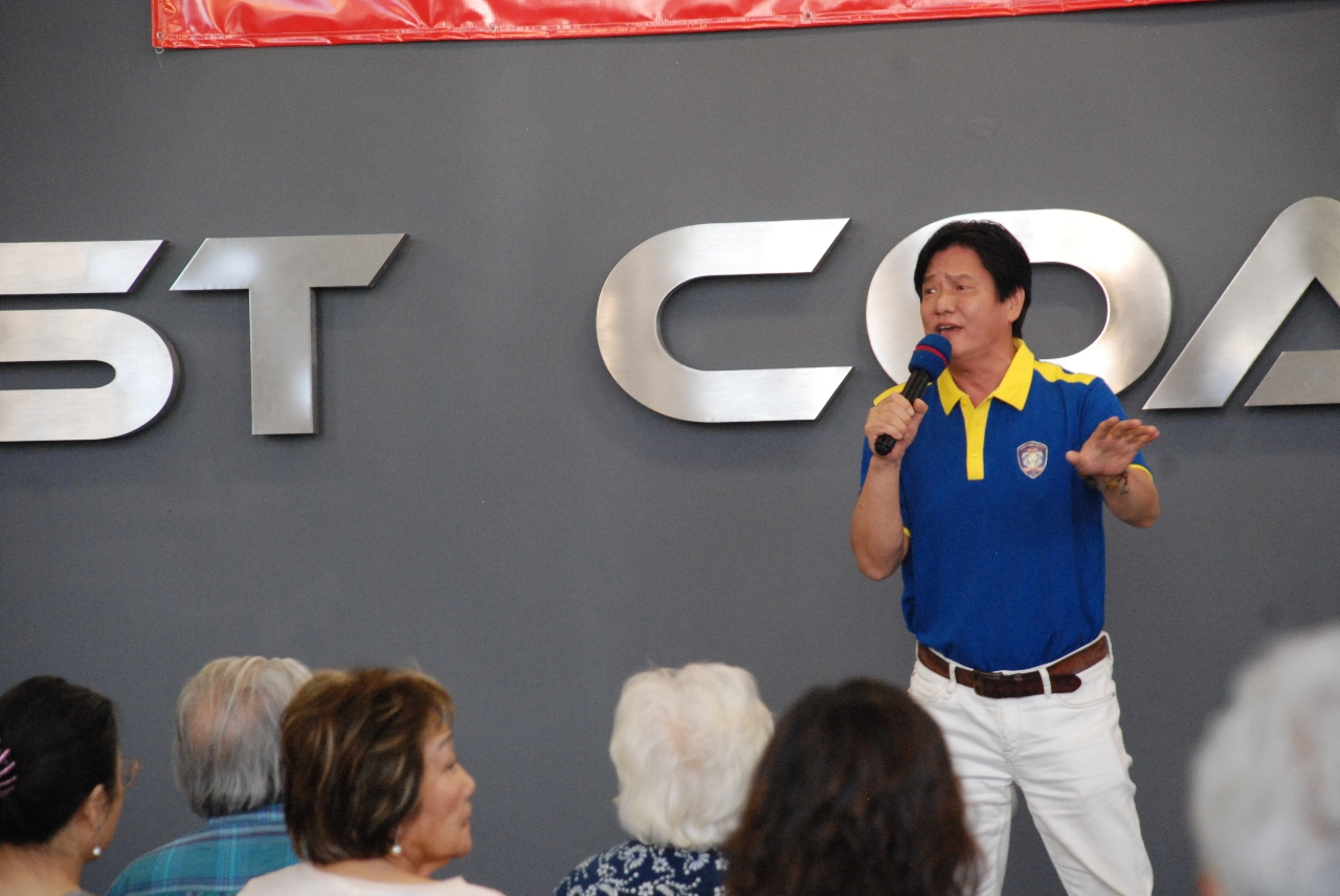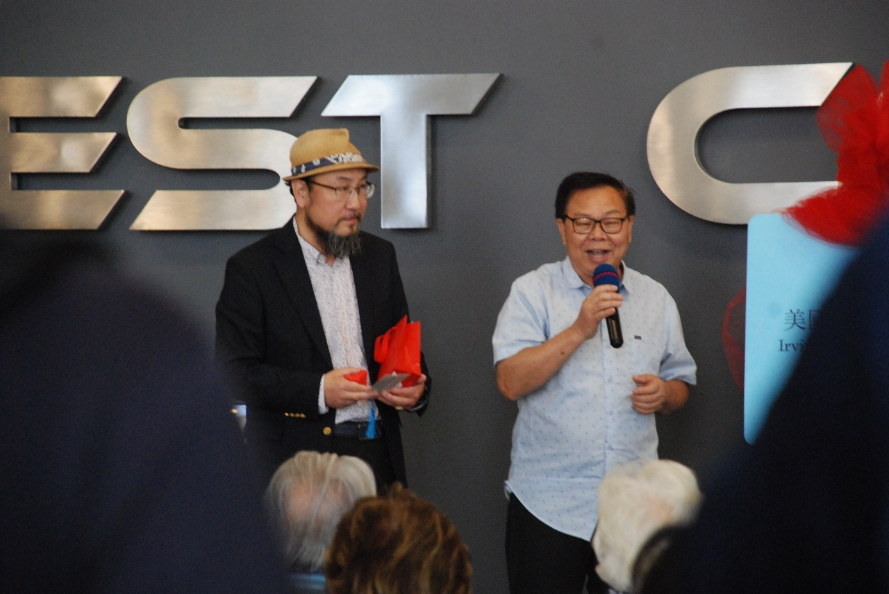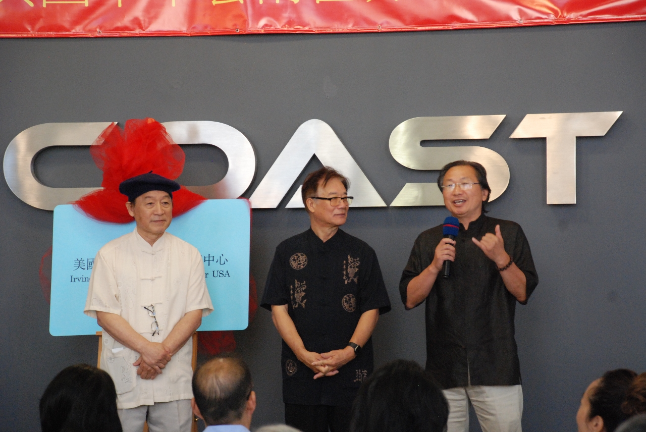 美國西海岸俱樂部負責人LEO WANG在致詞中, 感謝各位來賓前來祝賀中心的成立. 他表示, 我們在原來的航海釣漁船, 豪車買賣,汽車租賃, 房車旅行, 汽車3M貼膜, 國際台球, 乒乓室, 潛水俱樂部, MINI高爾夫, 攝像錄影的基礎上, 將增加更多的許多新的文化服務項目. 他對美國中華藝術宮的喬遷西海岸俱樂部, 表示熱烈的歡迎, 他說, 短短幾年中, 美國聚源文化交流中心和中華藝術宮做了幾十場的書畫藝術展, 在社區很有聲望, 同時還有一年一度的新春點燈儀式, 《同一盞燈, 點亮世界》, 在南加州點亮為世界帶來和平的希望之燈.
