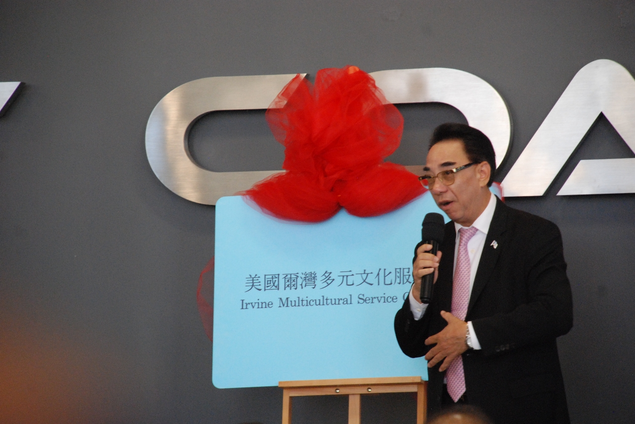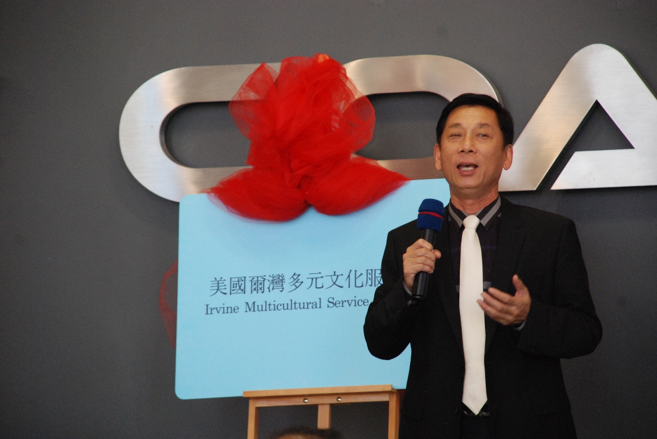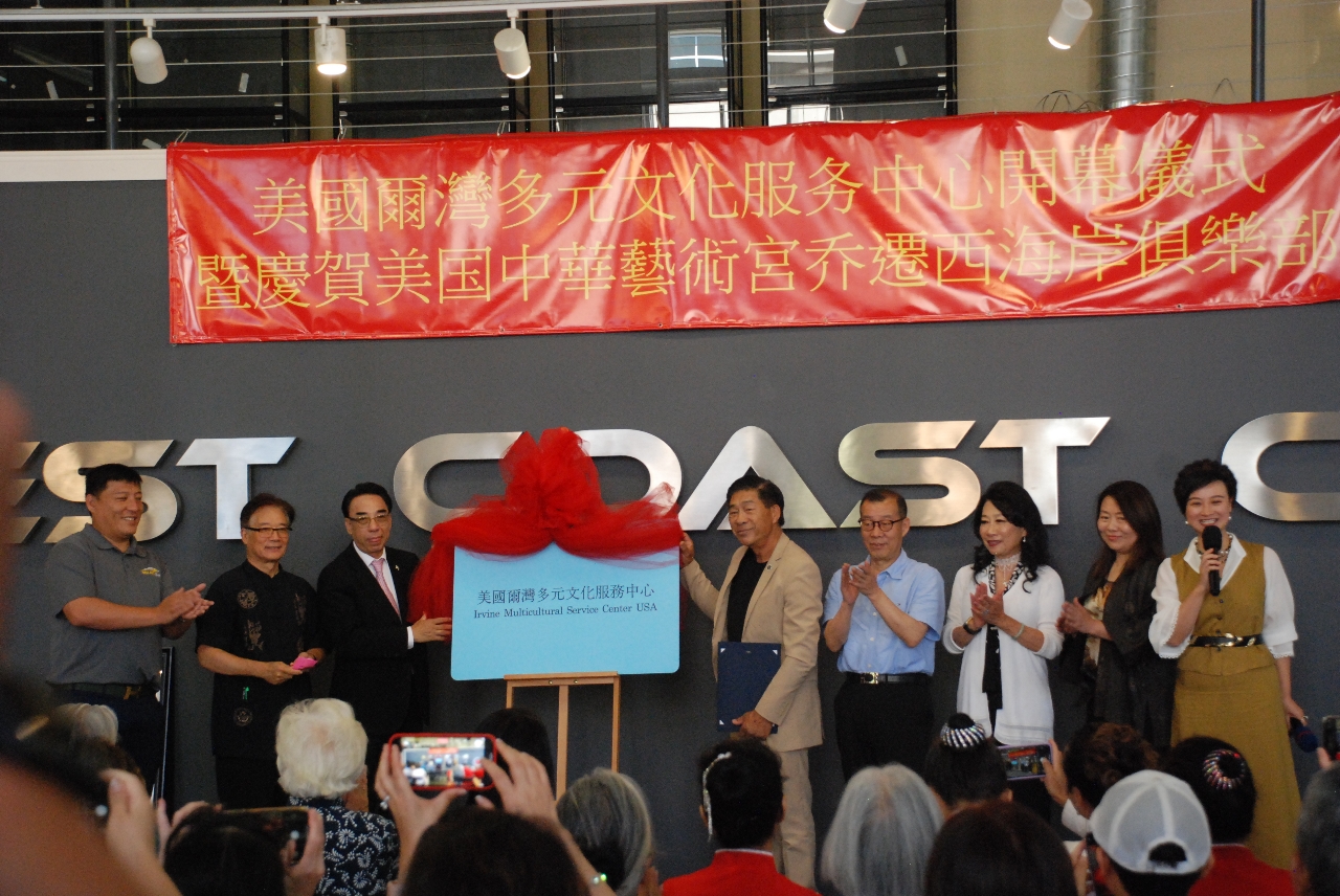 中國駐洛杉磯總領事館文化參贊王太鈺, 加州財政部長馬世雲的特別代表Daneil Sieu 夫婦, 蒙市前市長林達堅, 美國西海岸俱樂部負責人LEO WANG, JUDY JIN和美國爾灣多元文化中心主任魯安, 在貴賓的見證和熱烈歡呼聲中,為美國爾灣多元文化服務中心揭牌.