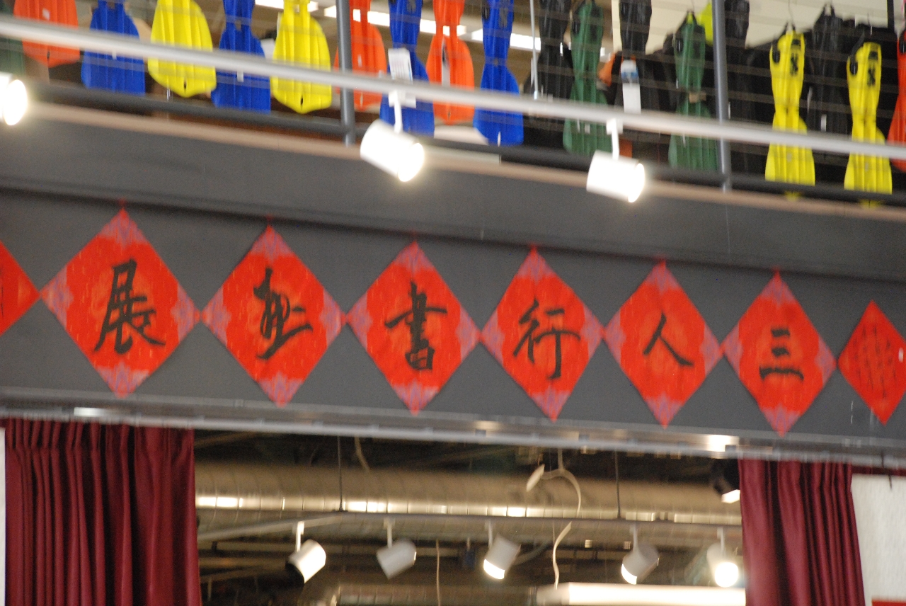 這次三人行書畫展, 還同時展示了孫曉華, 甘富忠和李大熊的書法篆刻作品, 何念丹老師的書畫長卷.