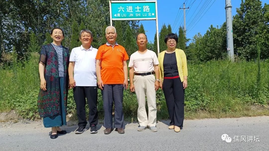 车子出周村沿309国道前行,进王村镇不远,到一路口左拐,一个“六进士路”牌映入眼帘,我们那个兴奋啊,即停车拍照留念。