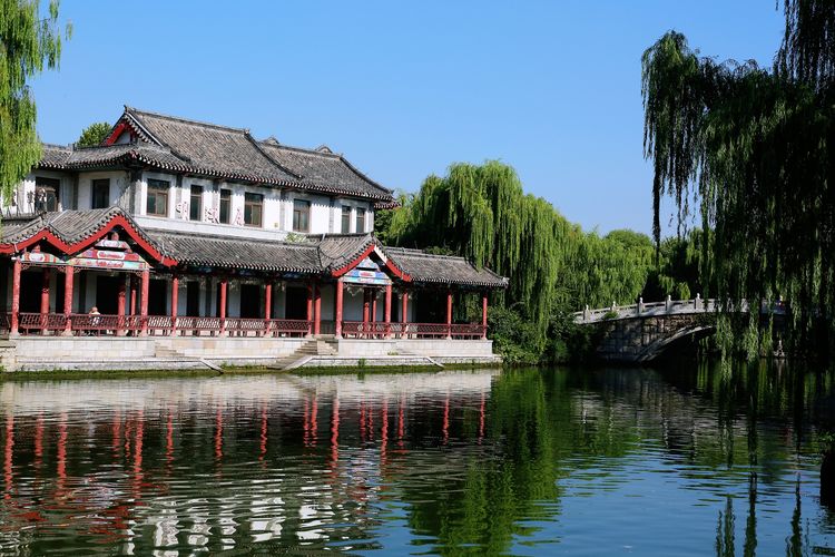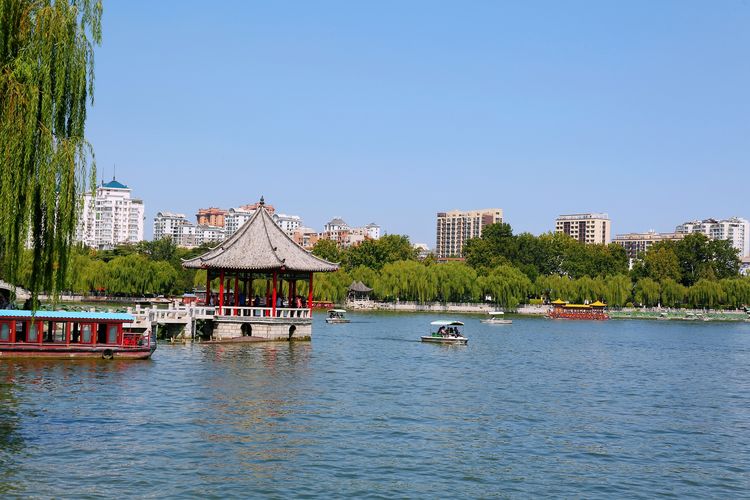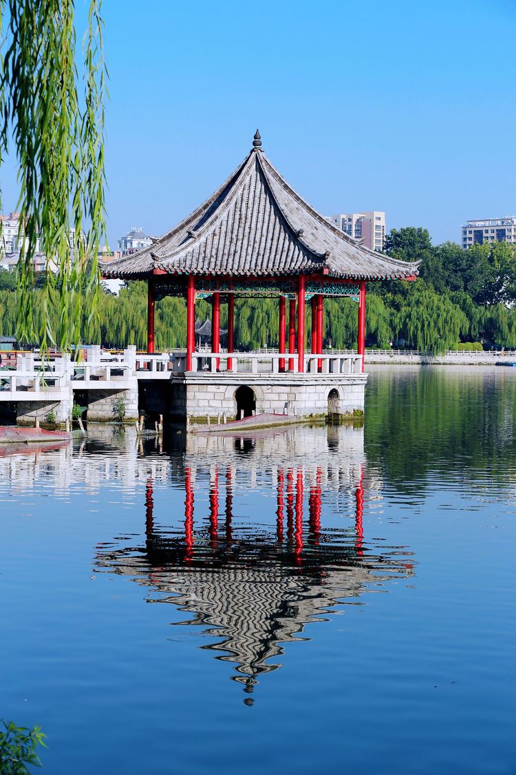 我从大明湖南门出发,沿着湖边南岸,由西往东,边赏景,边拍摄,长枪短炮齐上阵,直达超然楼景点为止。然后,原路返回,补景补拍,历时近三个小时。