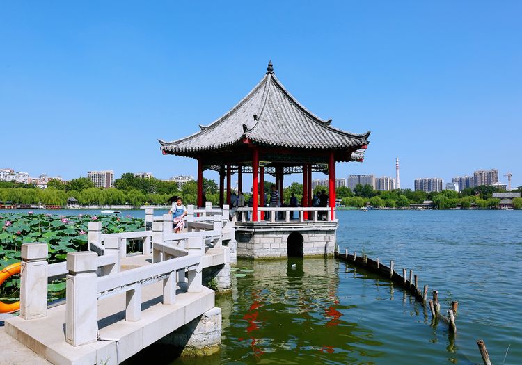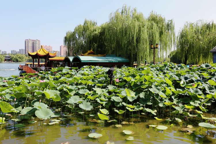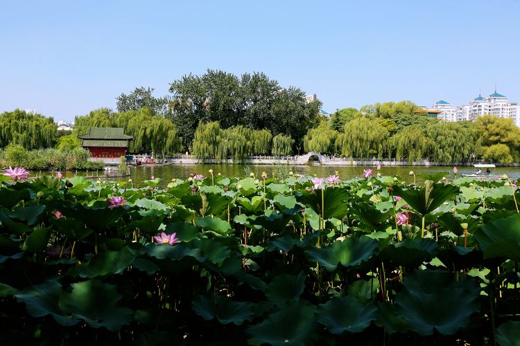 大明湖的清晨,总能吸引我早起。8月14日,是周一。我5点半就起床了,背着摄影包,乘坐公交车7点就赶到了大明湖。习习湖风扑面而来,顿时,让我感到神清气爽。