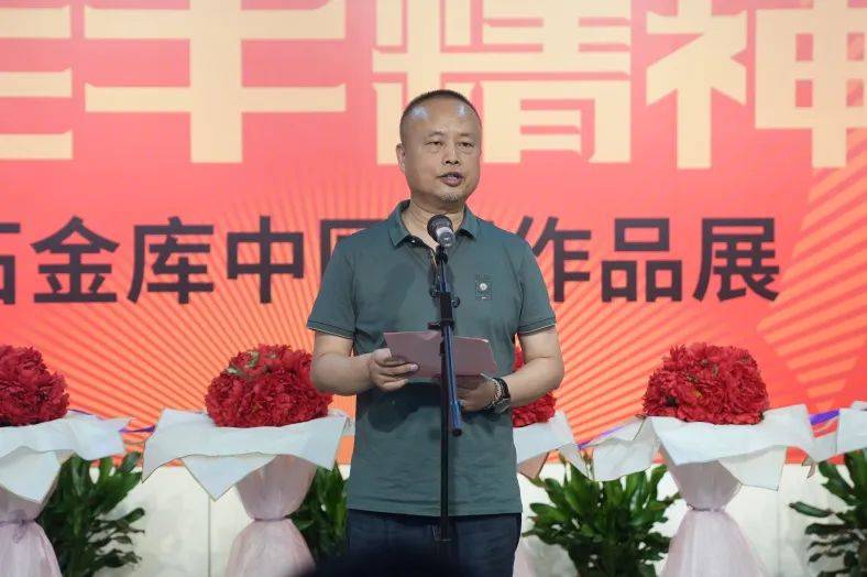 石金库在致辞中由衷感谢主办、承办单位的支持与付出。他表示,自己喜画牛是因为“牛”蕴含着厚德载物、吃苦耐劳、无私奉献、开拓创新等中华优秀传统文化意象, “三牛”精神的概括归纳让他有了更大的创作动力。他希望以书画艺术诠释“三牛”精神,致敬每一位平凡而又伟大的劳动者,讴歌这个美好时代。