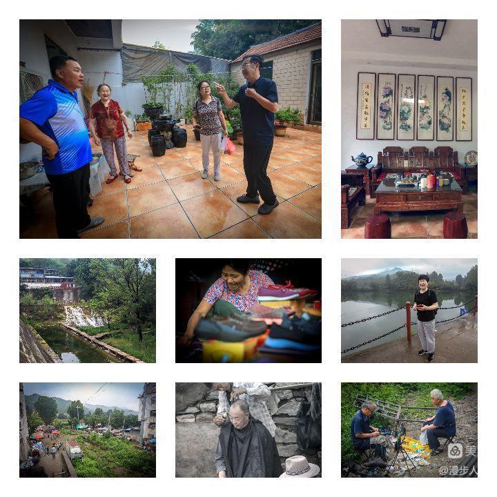 这天正逢峨庄大集,李哥早早在集市口等候我们,带领大家绕集市一周,我们欣赏了山乡集市的繁华商贸和农村的民俗风情,不少农商都用扫码支付,真实品味了乡村文化的气息。偶然间,遇到了二十多年没见过的老同事,年轻时,风华正茂,走遍祖国大地。现在面容沧桑,银发稀少,岁月的痕迹布满面庞。我们几分钟地交谈,道出了退休后,不吃老本,广开思路,利用自己的特长,选择在老家办起了茶馆,发挥余热,以茶会友。生活得幸福潇洒。