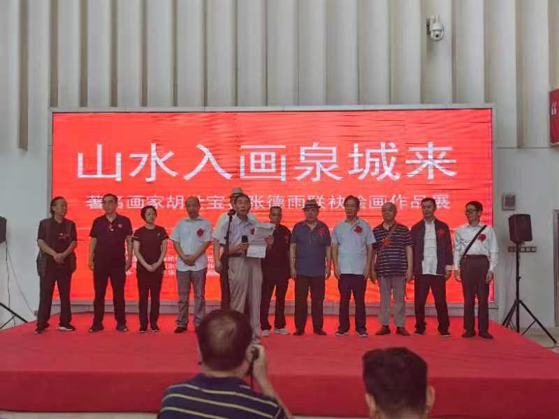 八月泉城,山水明朗,翰墨飘香,今日(8月23)实力派画家胡世宝、张德雨”山水入画泉城来”联袂绘画作品展在高档大气的济南文化馆“举行,国家一级美术师、山东艺术学院导师、著名中国画家、主承办方负责人韩躍凌、赵勇、阴蔚、任立文、李德宁及书画家李海峰、赵世刚、季竹君、李发胜等百余人参加开幕式。刘玉璞、燕子学、王德、李德岭、刘卫东先后致辞,李宗益主持。