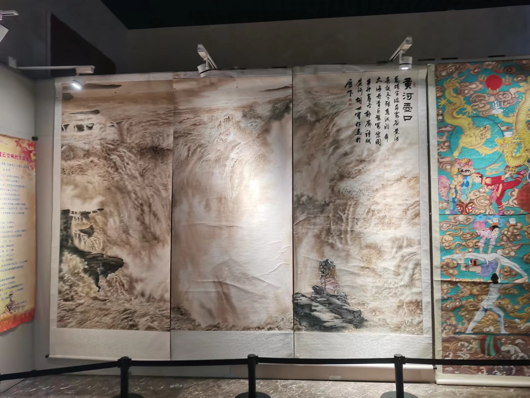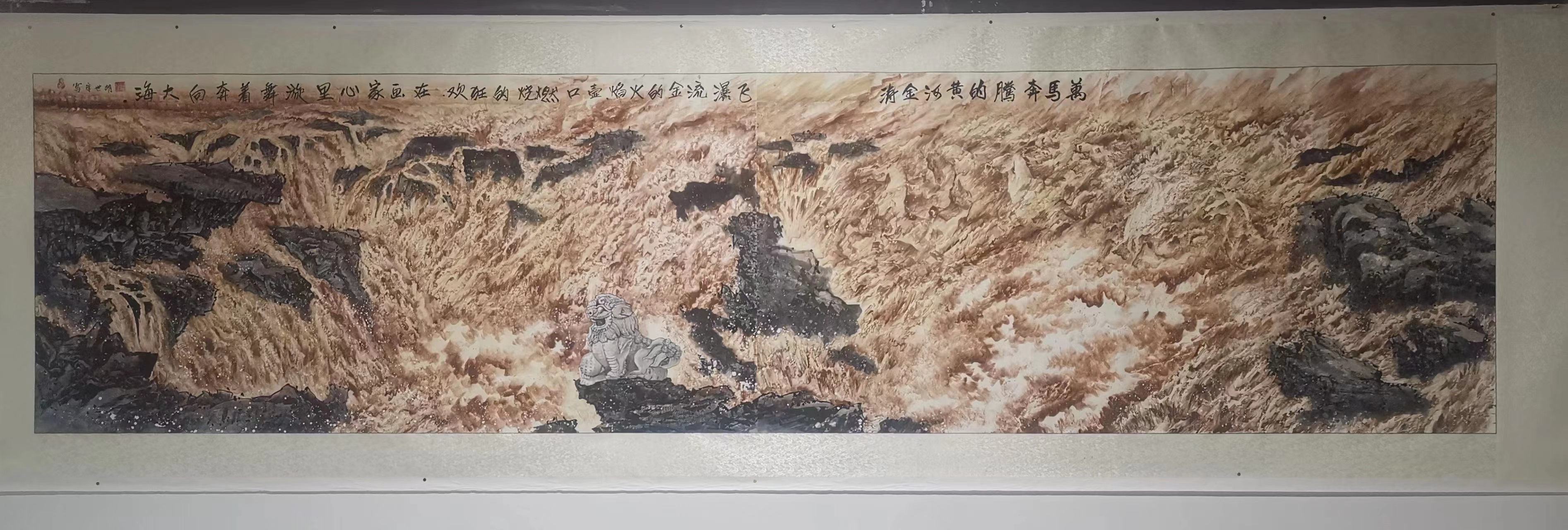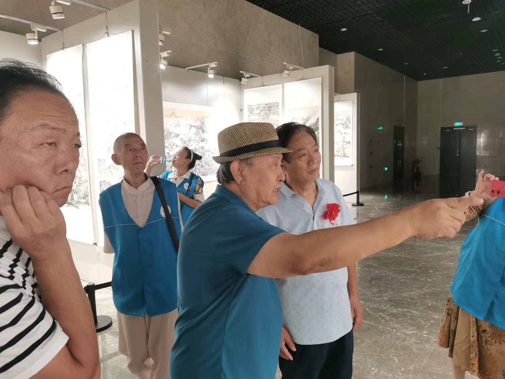 由济南市文化馆、济南市美术家协会、济南市青少年宫、 天桥区政协、天桥区老干部局、山东省文史书画研究会、中华新青年书画院、山东华典艺术有限公司、山东东方艺术公社、山东省名人书画院、龙泉书画院、济南春元书画院 、山东普利书画院、济南明湖酒业有限责任公司、济南十一中校友会等主(承)办的此次展览,共展出近百幅绘画作品,多以山水为主。画中飞流直下的瀑布,潺潺而流的小溪,汩汩而涌的泉水,怒吼的松涛,浩渺的江河,刀削斧砍般的崖头,烟波荡漾着山形塔影连绵不断的山峰,足以展现其画风朴质,古润雅静,细腻而厚实的功底,也可看出画者充分表达用心,用情,用爱展现对泉城和祖国大地的无限热爱。画作中既有四尺小幅,又有八尺大幅,气势恢宏,巍巍壮观。