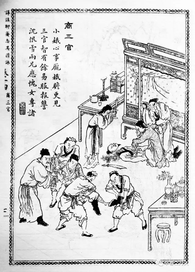因为女尸戴孝,大家怀疑是商家派来的刺客,暂且派了两个人看守。女尸面貌和活着时一样,摸一摸,身体柔软温热。两个家伙暗自商量着要想奸尸,其中一人抱住尸体转过来,正要解她衣带,忽然头上像挨了一棍似的,口中鲜血喷涌,立刻就死了。另一个大惊,慌忙告知众人,于是大家对女尸敬若神明,并且将此事报告到官府。府里的官长传讯商臣和商礼,兄弟两人都说:“我们也不知道其中原因,只是我家妹妹离家出走已经有半年了。”命他俩前去验看,果然就是商三官。官长也对三官的行为感到钦佩,就判决商臣、商礼把三官尸体领回安葬,并且下令豪绅家属不得报复。
