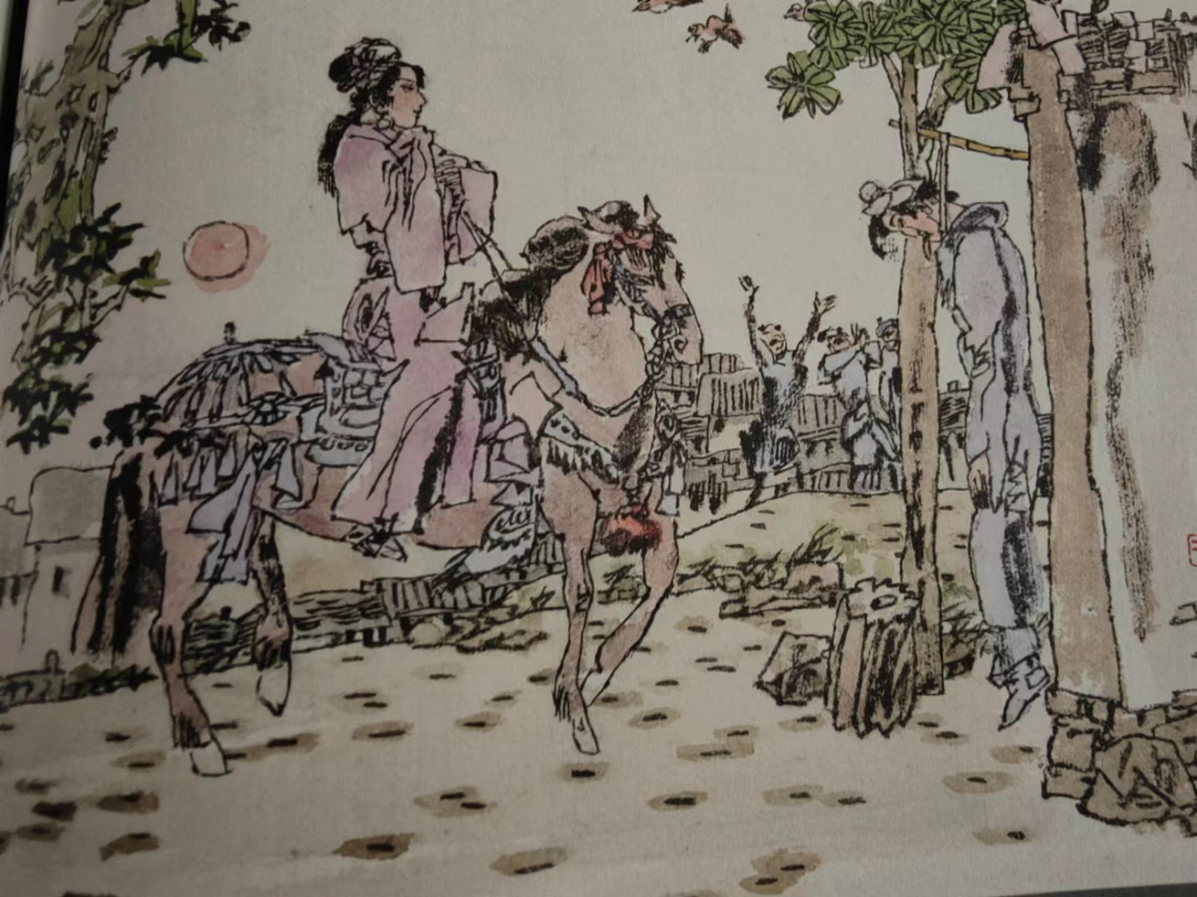 女子骑着马慢慢走远,他还原样不动,众人走近去看,只见舌头耷拉着,眼睛闭着,试试鼻吸,没有了,真的死去了。