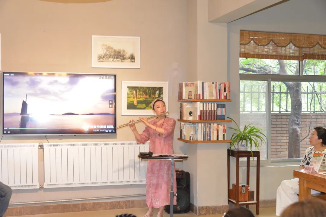 接下来的是音乐表演环节。龙口市音乐家协会副主席赵琳老师,为读者献上了一首优美动听的长笛演奏《渔舟唱晚》,为读书会增添了别样的美感。