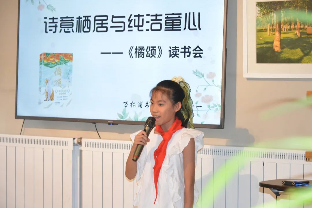 最后的朗读环节,姚玟伊、仲夏两位小读者先后朗读了《橘颂》中的片段,清脆悦耳的童音赢得了全场掌声。