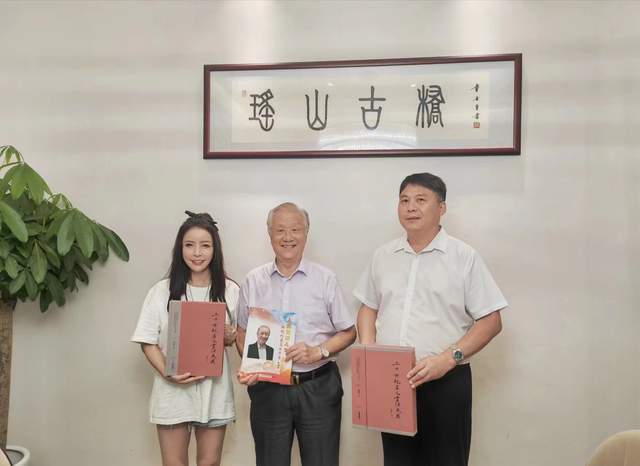 左起:亚洲天后张羽希 著名作家何国栋先生 主任荆杰合影留念