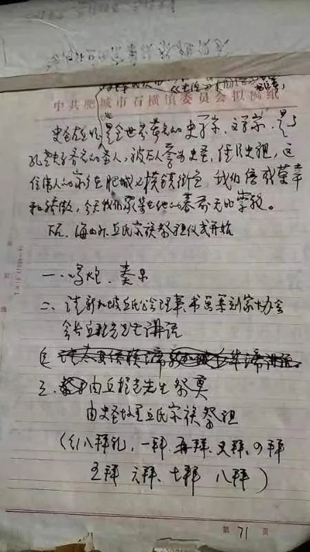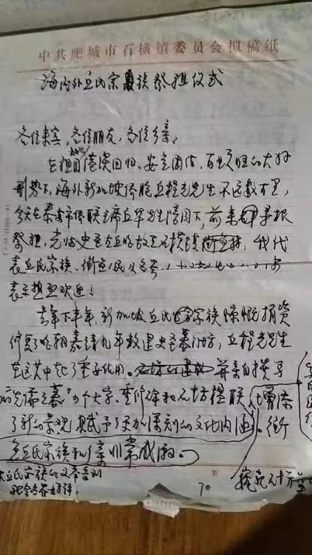 写完,我又想起,卢书记安排我当邱氏家族祭祖仪式宣读人,应提前写出《海内外邱氏家族祭祖仪式》草稿,两页稿纸。(见图)