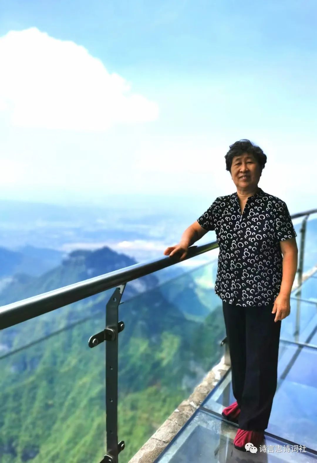 潇洒盘山穿栈道,从容跻步立天门。