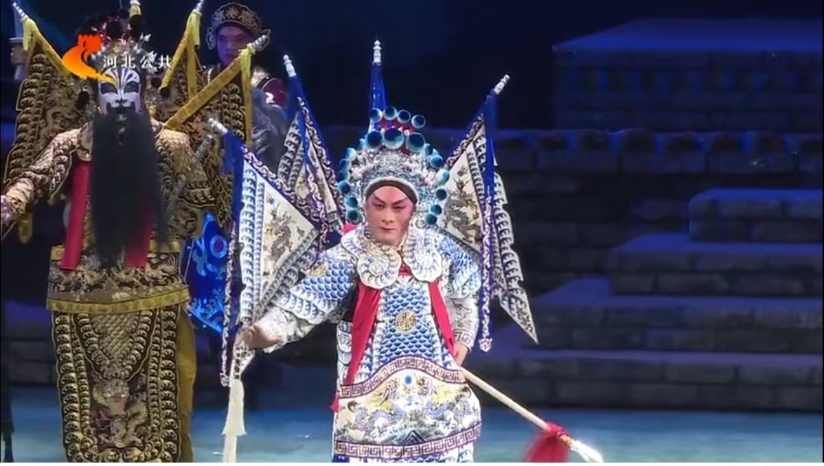 河北梆子《瓦桥关》精彩演绎杨家将的故事。图为中国戏剧梅花奖获得者、河北梆子剧院国家一级演员郝士超饰演杨延昭。河北广播电视台公共频道截图