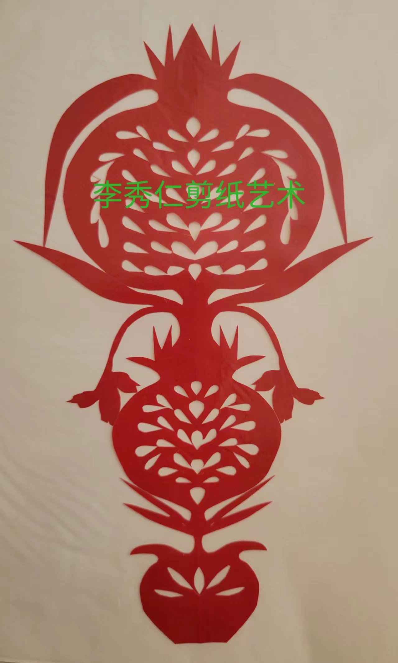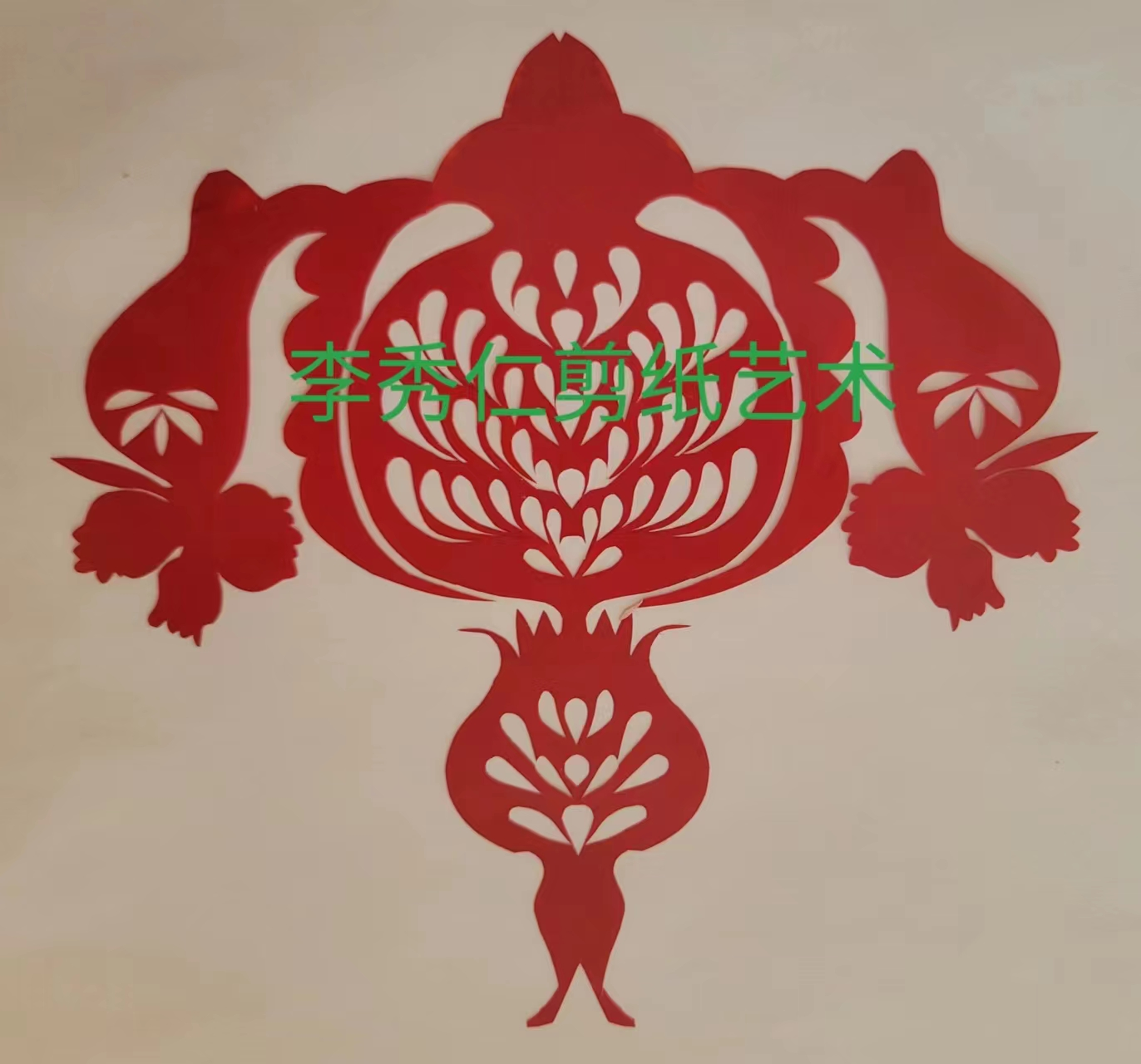李秀仁老人的剪纸中有关石榴的作品,亲朋好友看了极为喜欢,有藝術家说老人是东方的女毕加索,也有专业人士赞誉老人的剪纸作品张力不输马蒂斯,有的朋友看到“三个石榴一棵树“说这是“连升三级”,也有寓意“红红火火”,“福寿延绵“的作品。在金秋之际,李秀仁老人的部分石榴剪纸作品以版画的形式有幸在济南文化馆展出:果实累累的石榴树,溜圆籽满的大石榴,“奇貌异样“的“鸟形树”……,所展示的作品会给观者留下想象的空间,同时也祝福观众健康福寿,收获满满,平安吉顺。