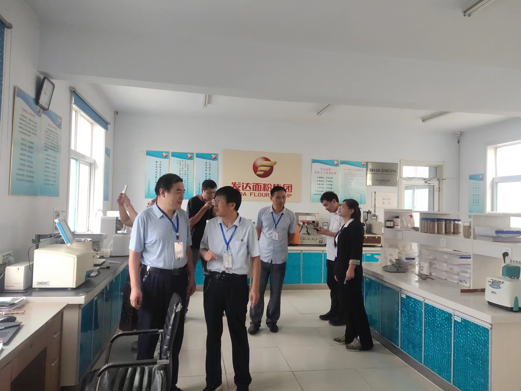 发达面粉集团办公室主任纪州受集团执行总裁董金鲁委托引领大家深入到食品科研技术中心、现代化小麦加工流程车间及筹建中的高质量发展食品流水线、产品展示、企业文化等参观调查。