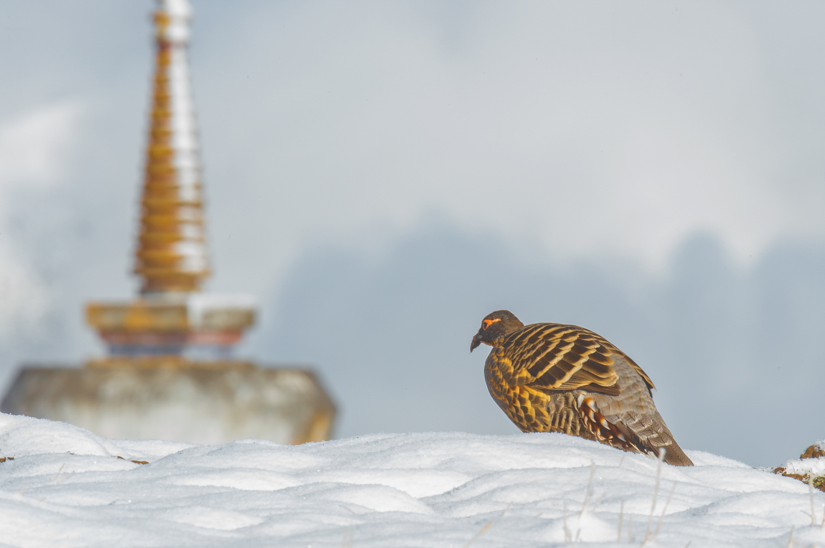 黄喉雉鹑栖息于海拔3500到4500米的林缘及灌丛中,会随季节进行垂直性迁移,主要分布在青藏高原的东南边缘地带,以植物的根、叶、芽、果实和种子为食,也吃少量昆虫。