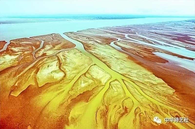 寥寥八个字,便不由得使我打开想象之门:魔力无边的造物主,挥动起硕大无朋的倚天巨笔, 饱蘸金墨,以华夏大地为纸,奋力一挥,便从青海的巴颜喀拉山到渤海之滨,写下了一个狂草“几”字,于是乎万里黄河便诞生了!这“几”字写得何等灵动飞扬!何等气势磅礴! 桑恒昌先生的这句诗,想象之大胆、夸张之奇异、比喻之形象、构思之新奇,令人叹为观止,堪称神来之笔!
