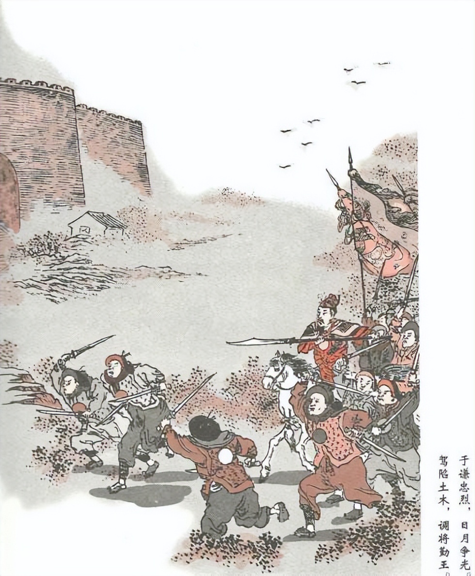 他在任明朝兵部侍郎期间,当瓦剌部队即将攻陷明朝首都北京之时,许多官员畏缩不前,而他竟大义凛然,挺身而出,受命于危难,率部屡败敌军,挽狂澜于既倒,扶大厦之将倾,拯救了大明王朝,使中国历史上避免了一次大倒退,大大延长了我汉民族这个王朝生命。