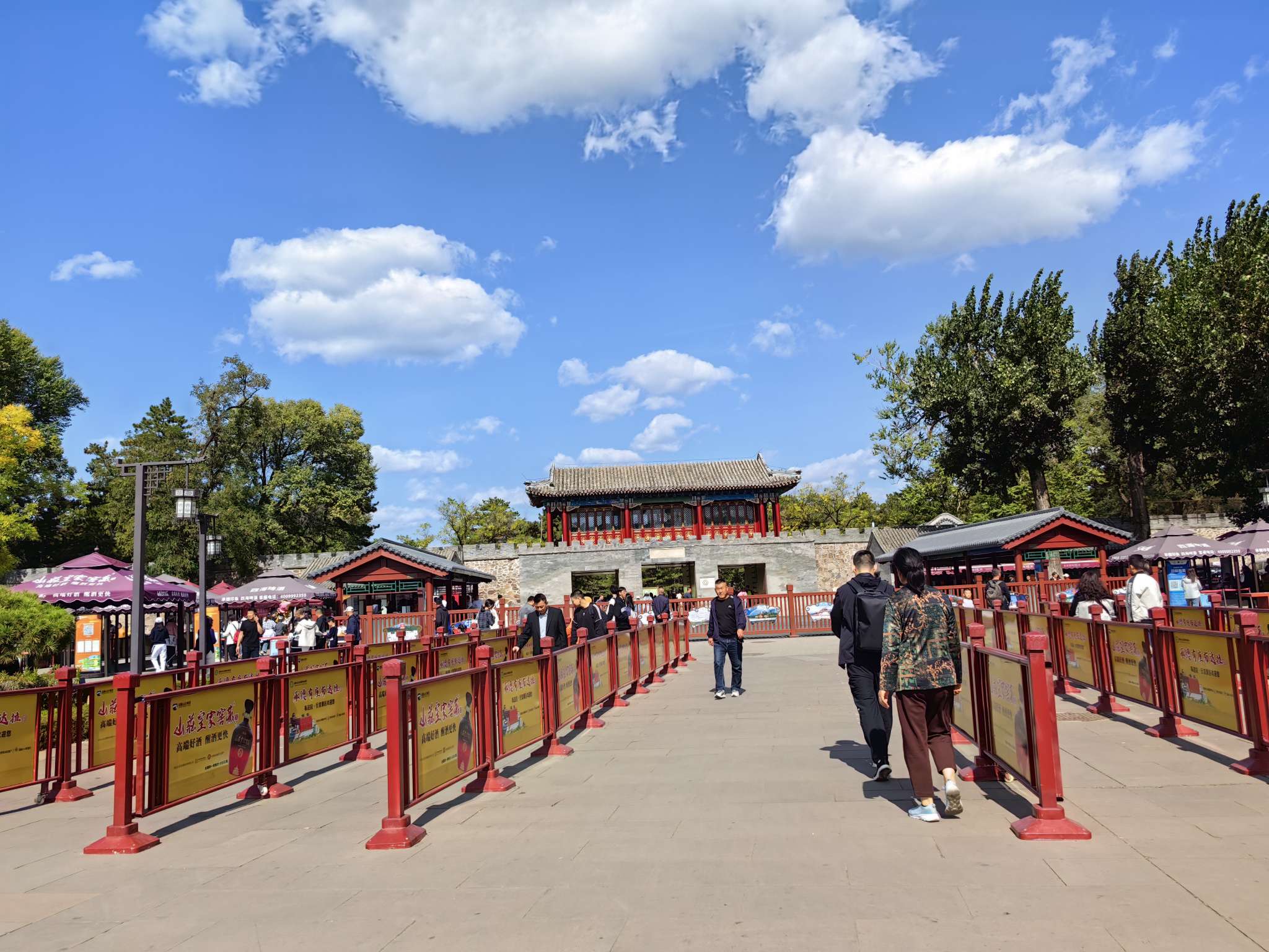 蓝天白云,行走的云朵把我们带到承德避暑山庄,城门楼式的大门映入眼帘,透着历史的厚重,不愧是皇家园林,大气、庄严。宫殿区位于山庄南部,占地10.2万平方米。宫室建筑林立,布局严整,是紫禁城的缩影。包括正宫、松鹤斋、万壑松风和东宫四组建筑。正宫是宫殿区的主体建筑,包括9进院落,分为“前朝”“后寝”两部分。在丽正门的门楣上方悬挂着“避暑山庄”四字牌匾,是康熙御笔真迹。由于是国庆假期期间,游人如织,但游客们井然有序,排队等候与“避暑山庄”四字合影留念。澹泊敬诚殿是正宫前朝的主殿,相当于紫禁城的太和殿。澹泊敬诚殿,是避暑山庄的正殿,是接见大臣,举办庆典的地方。殿内悬挂康熙御笔澹泊敬诚四个字。正宫现辟为博物馆,陈列清代遗留下来的宫廷文物。正宫区藏有珍贵文物2万余件。其后的殿堂分别叫“四知书屋”“烟波致爽”“云山胜地”等,是皇帝处理朝政、读书和居住的地方。“烟波致爽”殿是一座五开间平房。