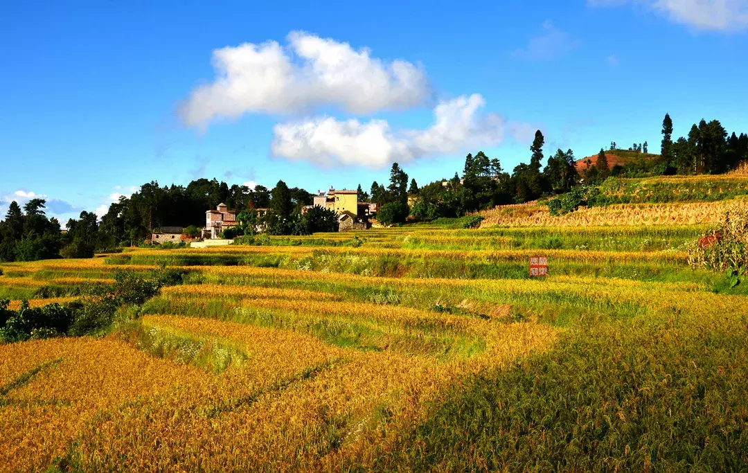 看那远处的稻田里,成熟的金黄稻穗散发着清香随风摇曳,宛如波光粼粼的海洋,又如随着风的节奏跳跃出动人的群体舞蹈,仿佛在庆祝这丰收的喜悦。果园里,硕果累累的柿子树、苹果树、葡萄藤,把枝头压得低垂。红彤彤的苹果、红艳艳的石榴、金黄的梨子和紫红的葡萄,像一颗颗晶莹剔透的宝石,闪烁着诱人的光芒,让人垂涎欲滴。果实的香气弥漫在空气中,让人沉醉其中。