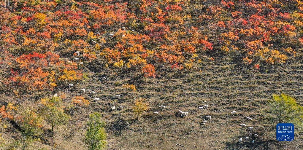 10月21日拍摄的河北省遵化市侯家寨镇山村秋景(无人机照片)。新华社发(刘满仓 摄)
