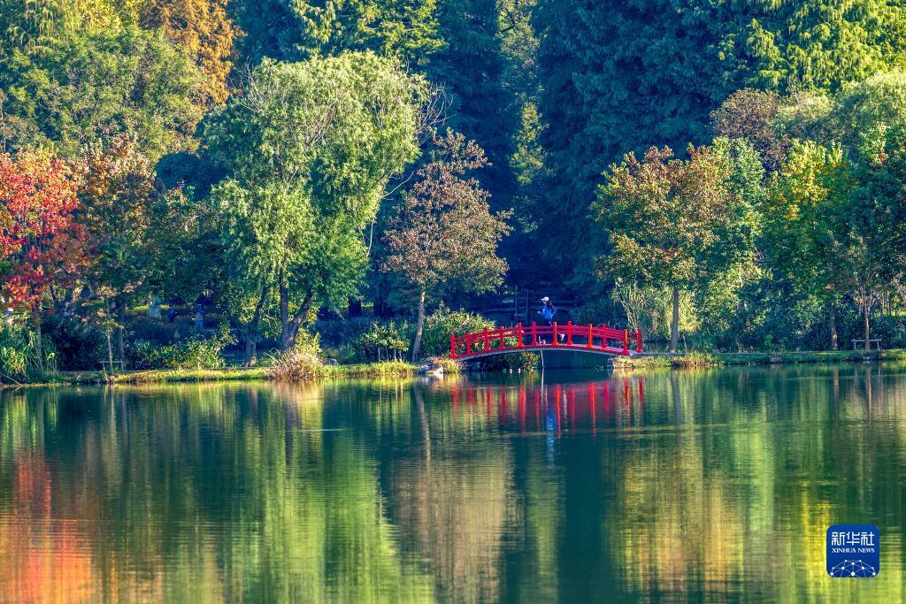10月21日,市民在江苏省南京市中山植物园内晨跑。新华社发(杜懿 摄)